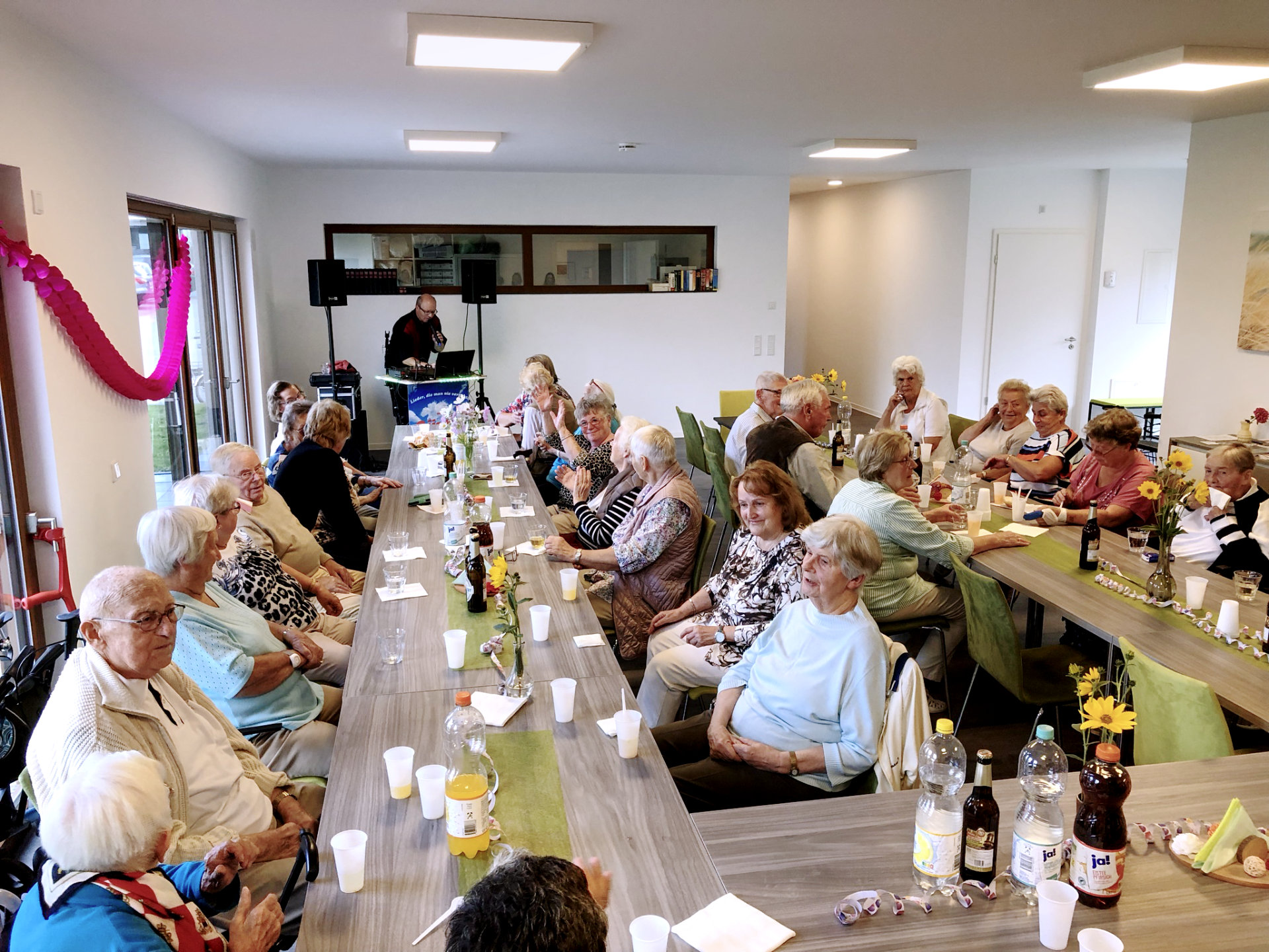 Das engagierte Raphaelis Service-Team reichte Leckeres vom Grill und bot verschiedene schmackhafte Salate zur Verköstigung an. Selbst ein paar Regentropfen an diesem Nachmittag konnte die Feierlaune unserer Senioren nicht verderben. Zu „Liedern die man nie vergisst“ schaffte DJ Günter mit Gesangseinlagen wieder ordentlich Stimmung im Gemeinschaftsraum. Es wurde lautstark mitgesungen, geschunkelt und das Tanzbein geschwungen.