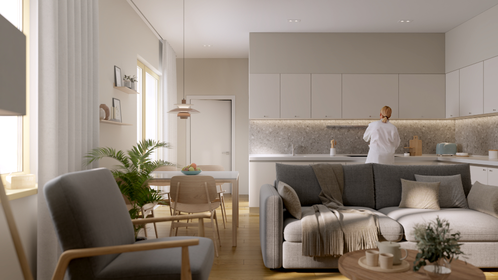 - Betreutes Wohnen bietet den Komfort eines voll ausgestatteten Wohnraums in Verbindung mit professioneller Betreuung, um ein barrierefreies Leben im Alter zu ermöglichen
